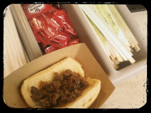 First, the food boat. Made of what I assume is recycled materials, this little brown boat is used to serve food that does not require utensils. Boats like this have been used in the past, but no where near the amount that are being used this year. The ability to grab your grub, walk, and eat is made much easier with the use of these little boats.