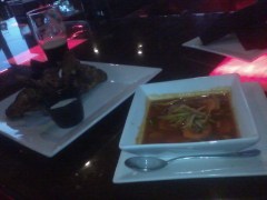 A total of 40 minutes passed and finally our order of wings and soup were placed in front of us. I took one spoonful and was taken aback… honey and cayenne pepper. Whoa! Honey and cayenne pepper…. in a soup?!?! I took another spoonful, making sure to get some veggies in the spoon this time. It was horrible! It tasted as if they took their wing sauce and tried to make veggie soup with it.