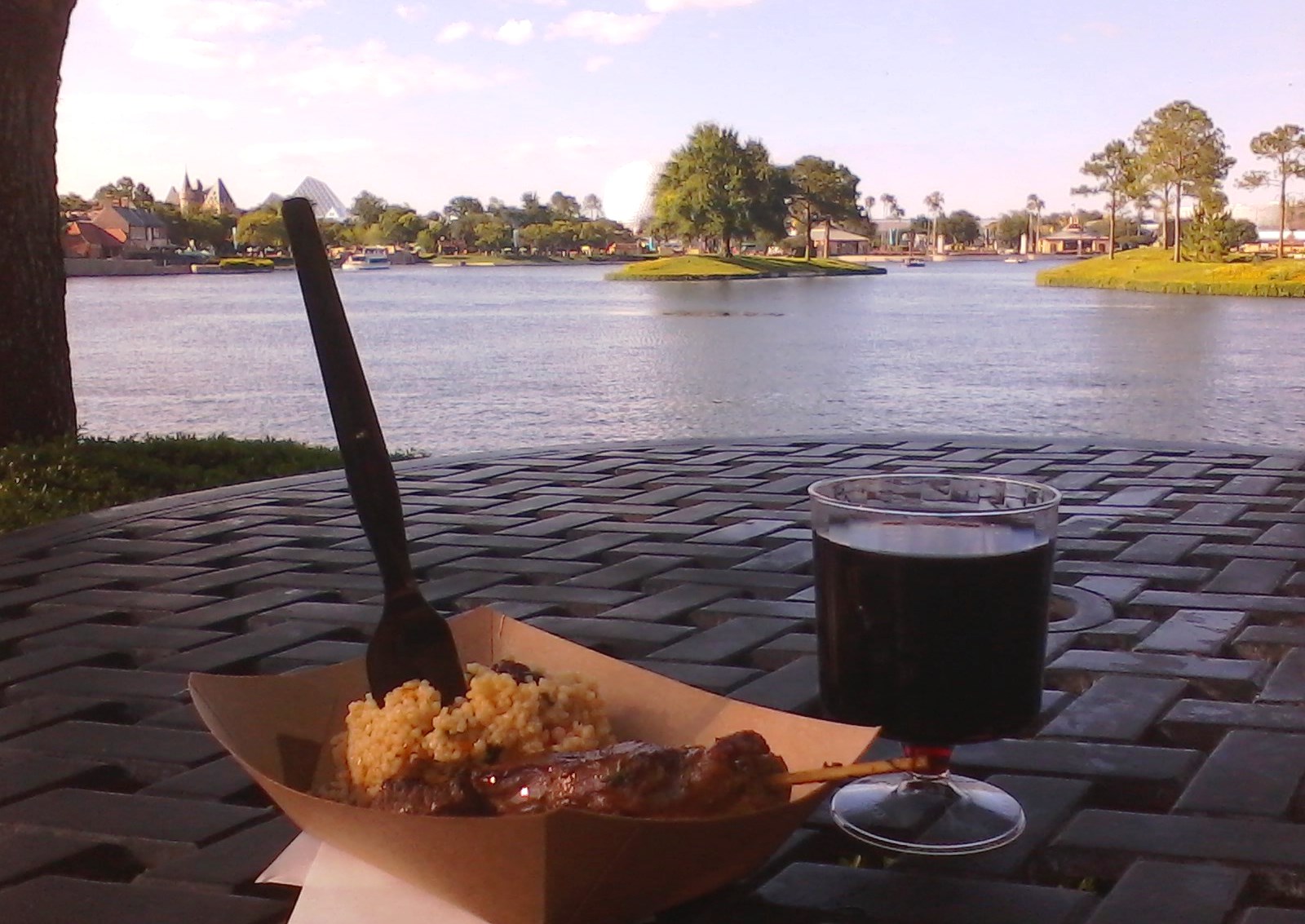 Choosing yet another spot along the water, I sipped the wine first. Heavy, pungent and spicy… it was a very powerful wine and a bit too dry for me. Unbeknownst to be, this wine would actually have me down for the count as the evening went on. The lamb was tender and flavorful, though, the last chunk was a bit fatty (however, I suppose that’s just how lamb can be). The accompanying couscous salad was nice, but would be easy for anyone to replicate.
