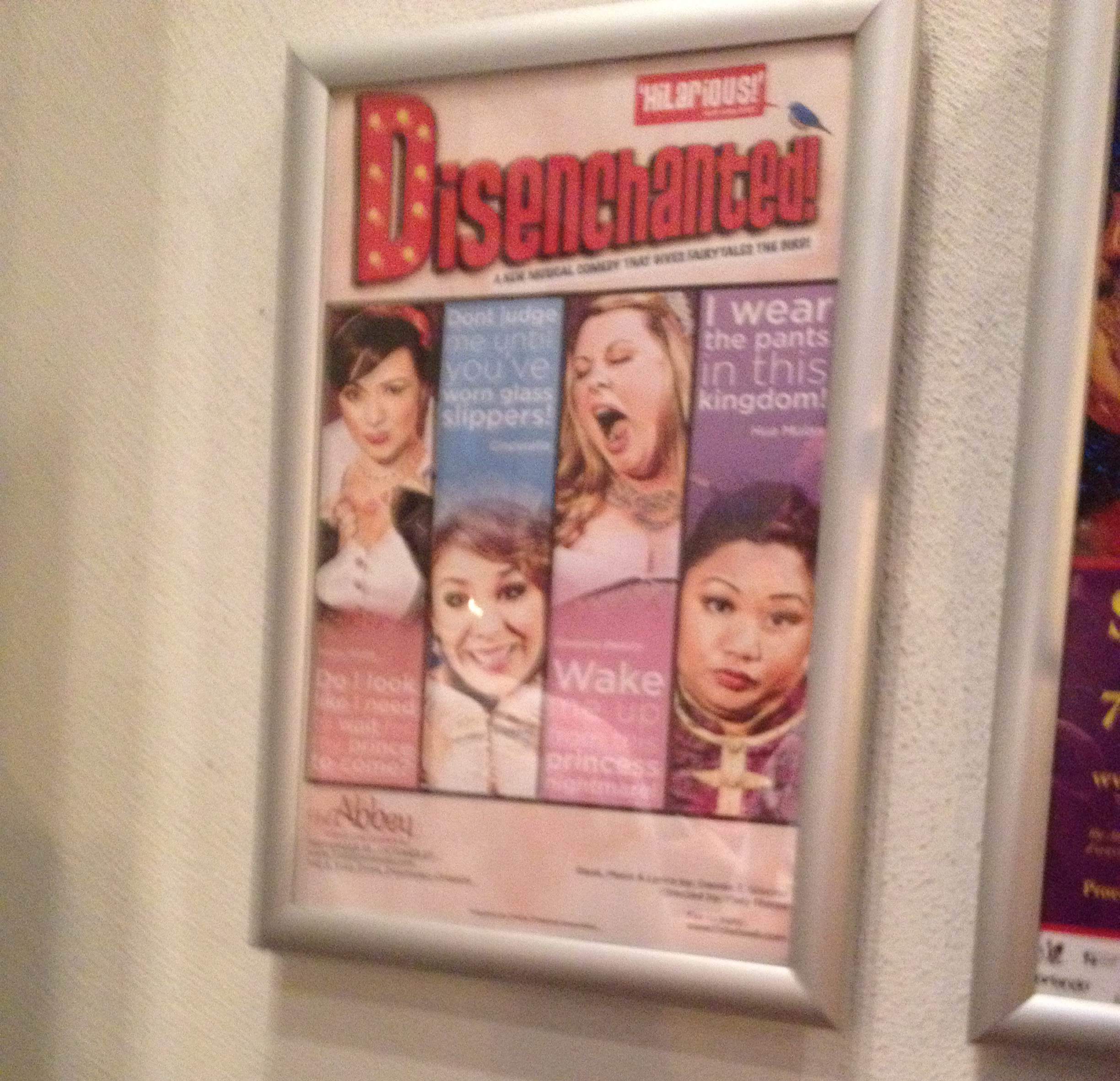 Now, before I move on, I must share more about what drew me to The Abbey in the first place, Disenchanted. This sassy, anti-fairy tale musical comedy got its start here in Orlando. I heard about this little production because of some pals from Walt Disney World Entertainment. Just one year ago, this all girl show was the hit of the Fringe festival and then gained popularity doing a few shows at the Shakespeare Theater in Loch Haven Park. Since then the show has toured and made it to New York City.