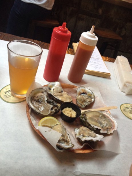 As you can probably tell from the photo above, the Happy Hour at ABO is quite impressive and a good deal. Beer and wine are only $5 and for something stronger, and a little more adventurous, oysters shooters are $3. Husband and I decided to kick off the afternoon with a round of shooters before sipping on some cold, refreshing draft beer. The happy hour oysters were impossible to resist so we slurped back half a dozen. These particular oysters were pulled from the warm waters of the Gulf of Mexico. Southern oysters are typically sweeter while Northern and Pacific Northwest oysters tend to have a cleaner, crisp taste.