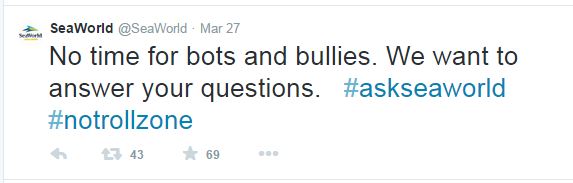 I am referring to a handful of tweets from SeaWorld’s official twitter account in response to the challenging remarks and questions they received during their live #AskSeaWorld session.