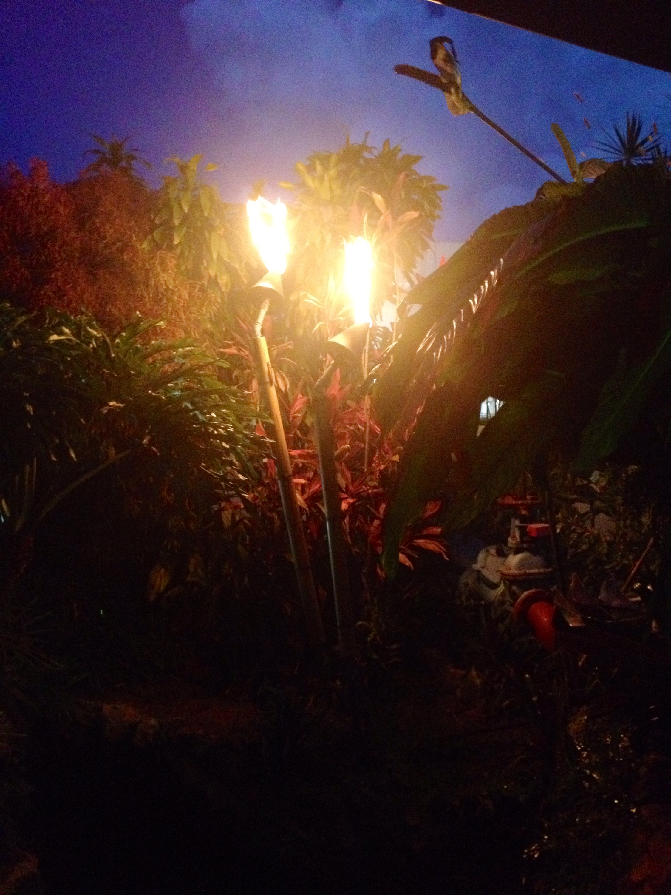 We pulled into the covered driveway in the early evening hours and opted for self-parking for $5 instead of valet for $10; this early in the evening there was still plenty of parking available in the self-parking lot. Before entering this Polynesian paradise I had to walk around the front to get a better look at the sign, the tropical gardens and tiki torches that burned brightly even in the Florida sunshine. As we walked around the front parameter of the building I noticed water flowing down some slanted windows, my curiosity piqued.