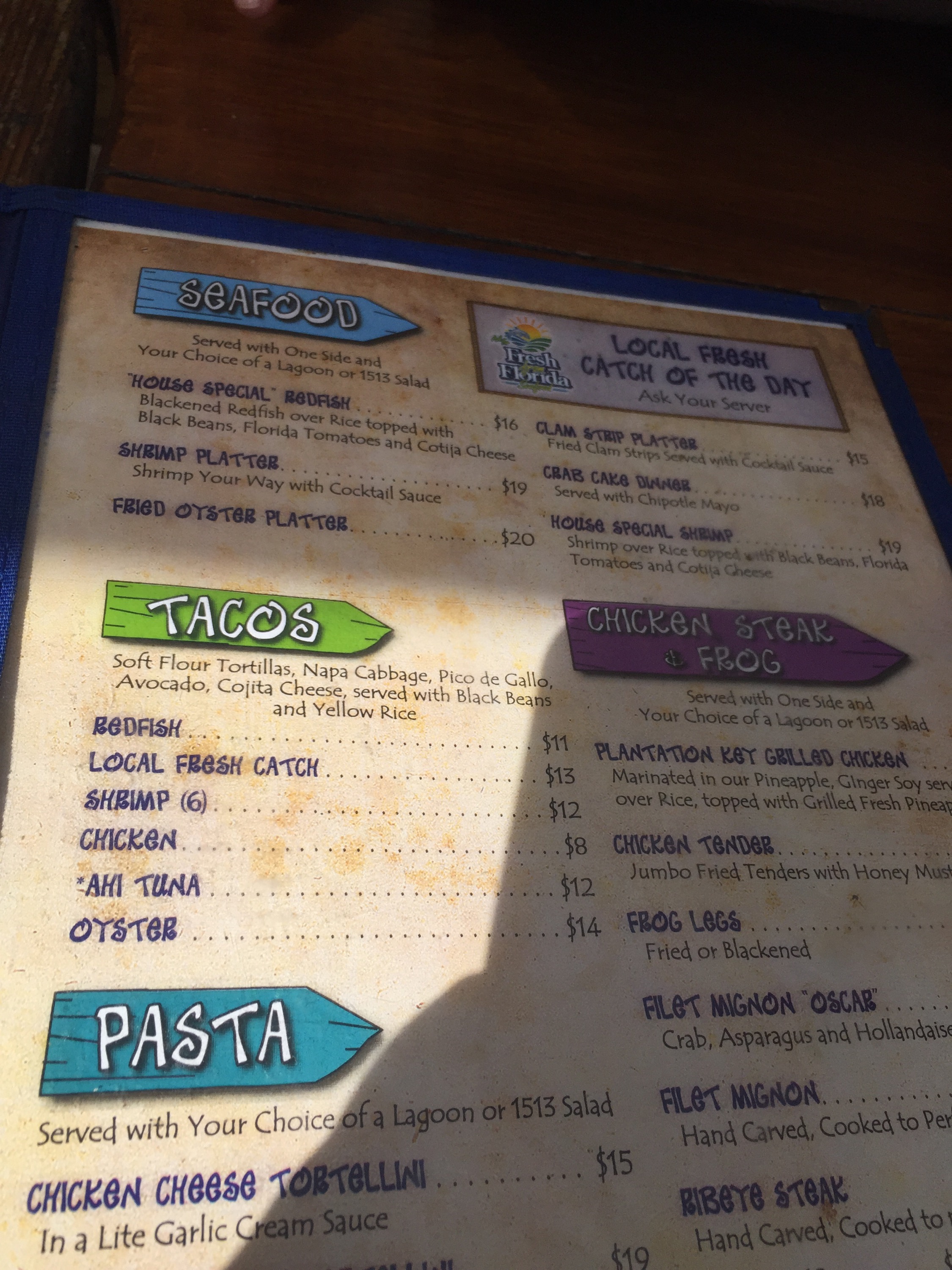 My aunt ordered the frog legs, fried (as opposed to blackened). I have always wanted to give frog legs a try; they are both a popular choice in Floridian cuisine as well as French cooking, so they can’t be that bad right? It is cliche but indeed they did taste like chicken, a leaner, less greasy version of fried chicken. I am glad I tried this dish, but given the array of fresh fish available here I don’t see myself ordering them on another visit.
