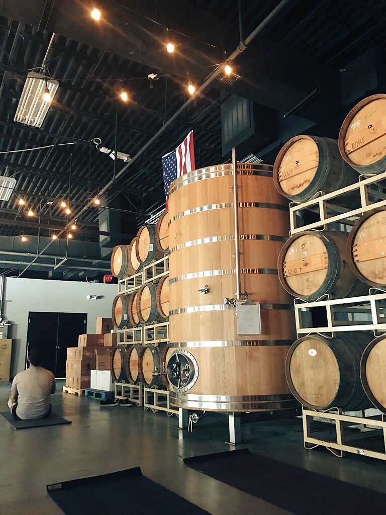At 11:30 AM every Sunday, yoga enthusiasts and beginners roll out their yoga mats among the production area inside Red Cypress Brewery. Edison style bulbs hang over head. Large, shiny tanks and rustic barrels flank a concrete floor as everyone listens intently to the yoga instructor.